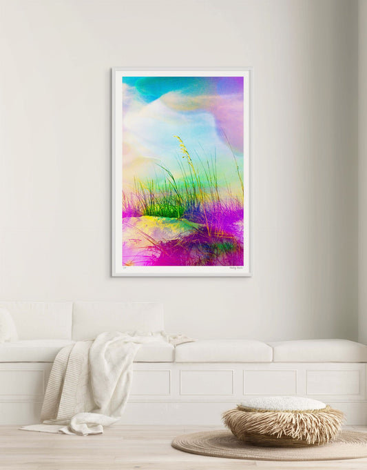 Brooks turns to the coast not to document, but to transform. Beach landscapes, dunes, and sea oats become subjects for chemical intervention—film submerged in experimental baths that react with salt air, light, and time. The resulting images capture something beyond what the eye sees: coastal scenes reimagined through unpredictable reactions, where natural beauty meets intentional chaos. These works bridge the familiar and the impossible, offering collectors coastal imagery that exists nowhere else in contemporary photography.