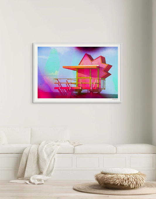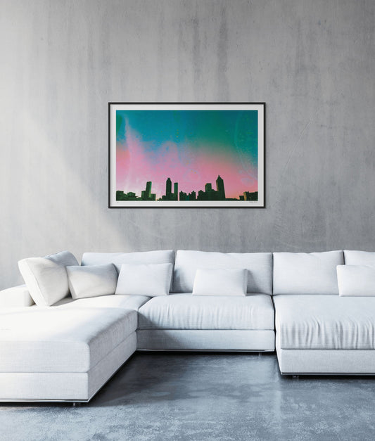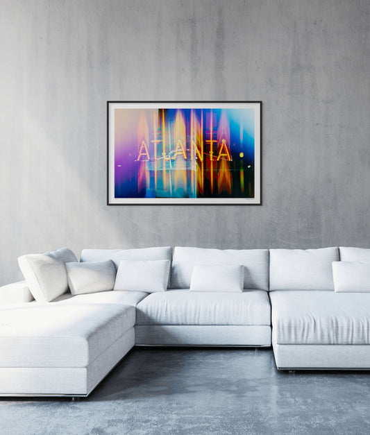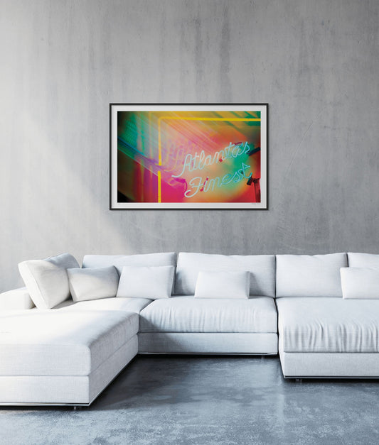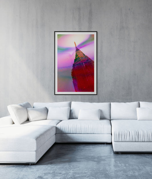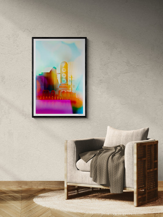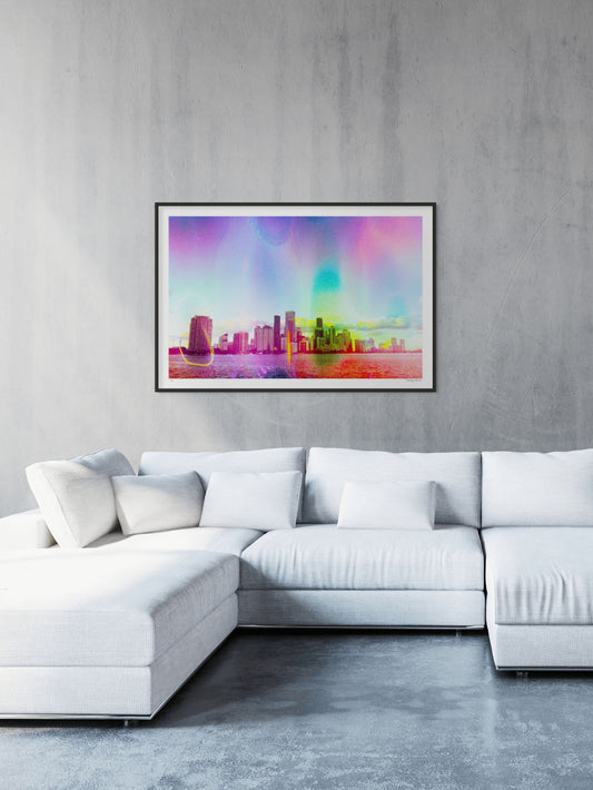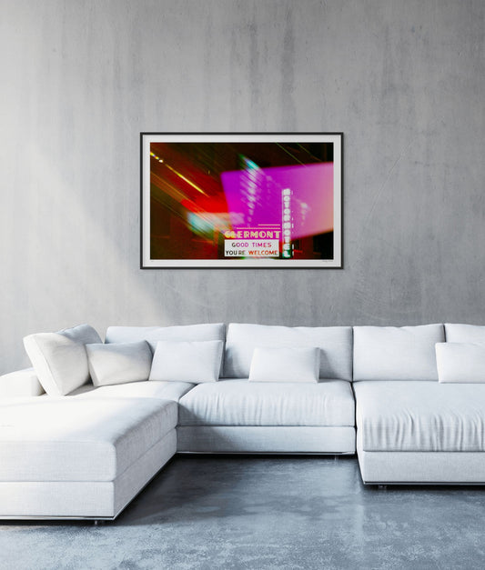 Neon signs, architectural geometry, and city skylines become subjects for chemical and optical intervention. Brooks transforms urban landscapes through experimental processes that amplify their inherent energy—multiple exposures layering scenes into singular compositions, film soup creating unpredictable color shifts, in-camera techniques that bend light and perspective. Art Deco facades, contemporary towers, and electric signage emerge reimagined: documentary and dreamlike simultaneously. These works capture metropolitan pulse without geographic limitation, offering collectors urban imagery that transcends place while remaining unmistakably architectural.