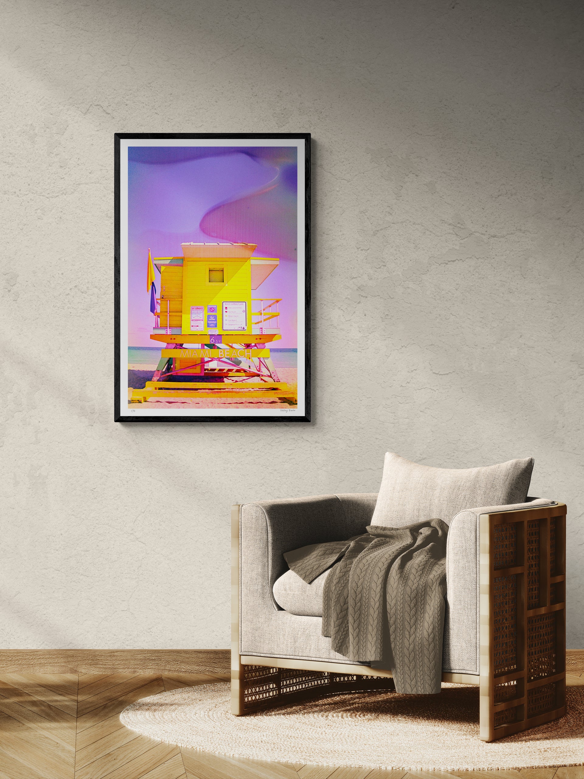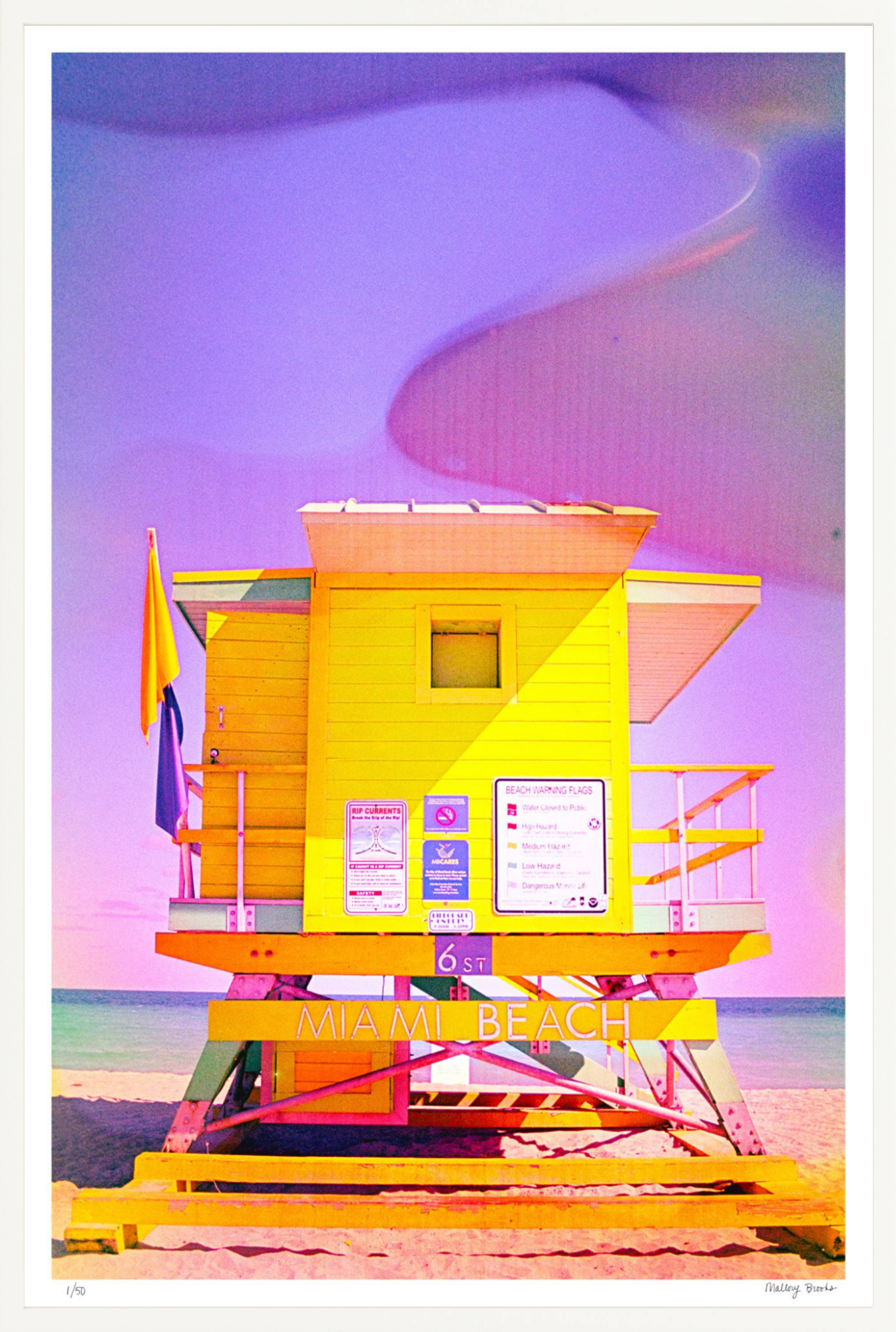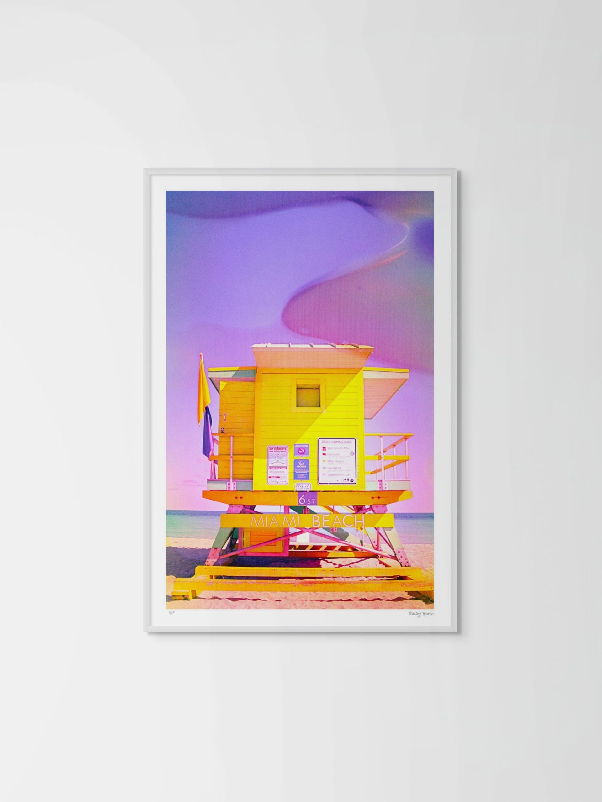 Miami Beach's iconic 6th Street lifeguard tower transformed through experimental analog photography. Shot on film and processed through film soup—an experimental chemical process using unexpected household materials—this piece demonstrates how controlled interventions can elevate ordinary subjects into contemporary fine art.