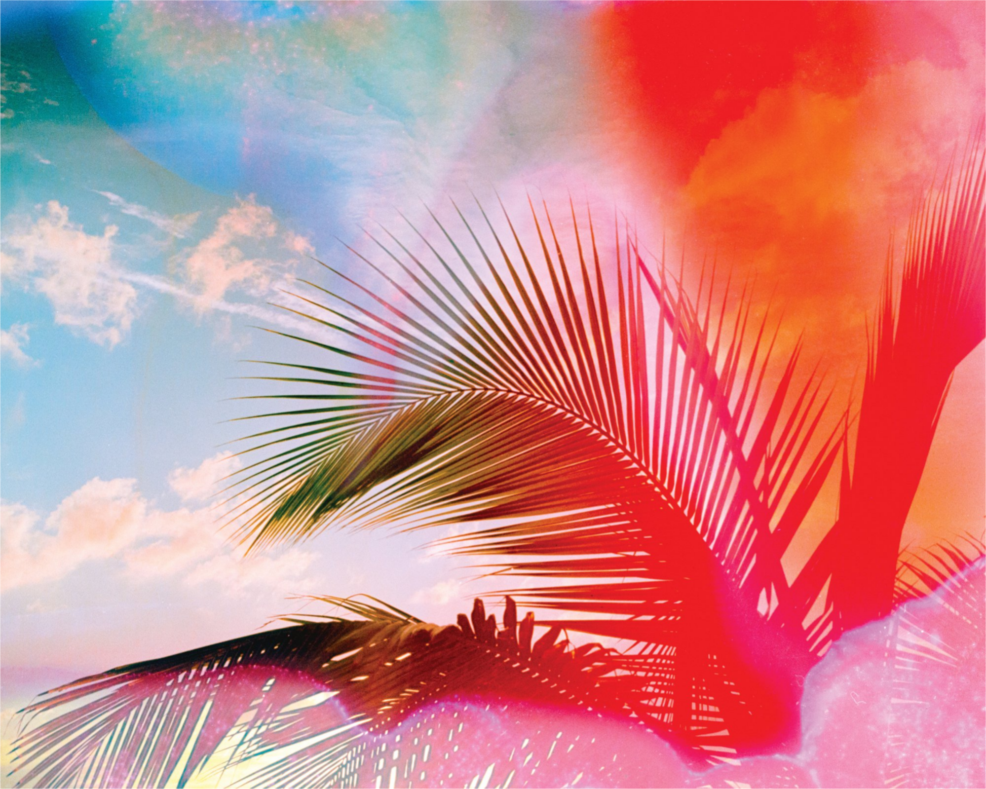 This palm is on fire! Only, the “fire” was created through a light leak on film. Additionally, the film was soaked in a combination of margarita salt, lemon juice, matcha and boiling water, to create a one-of-a-kind, I wish I was here work of art.