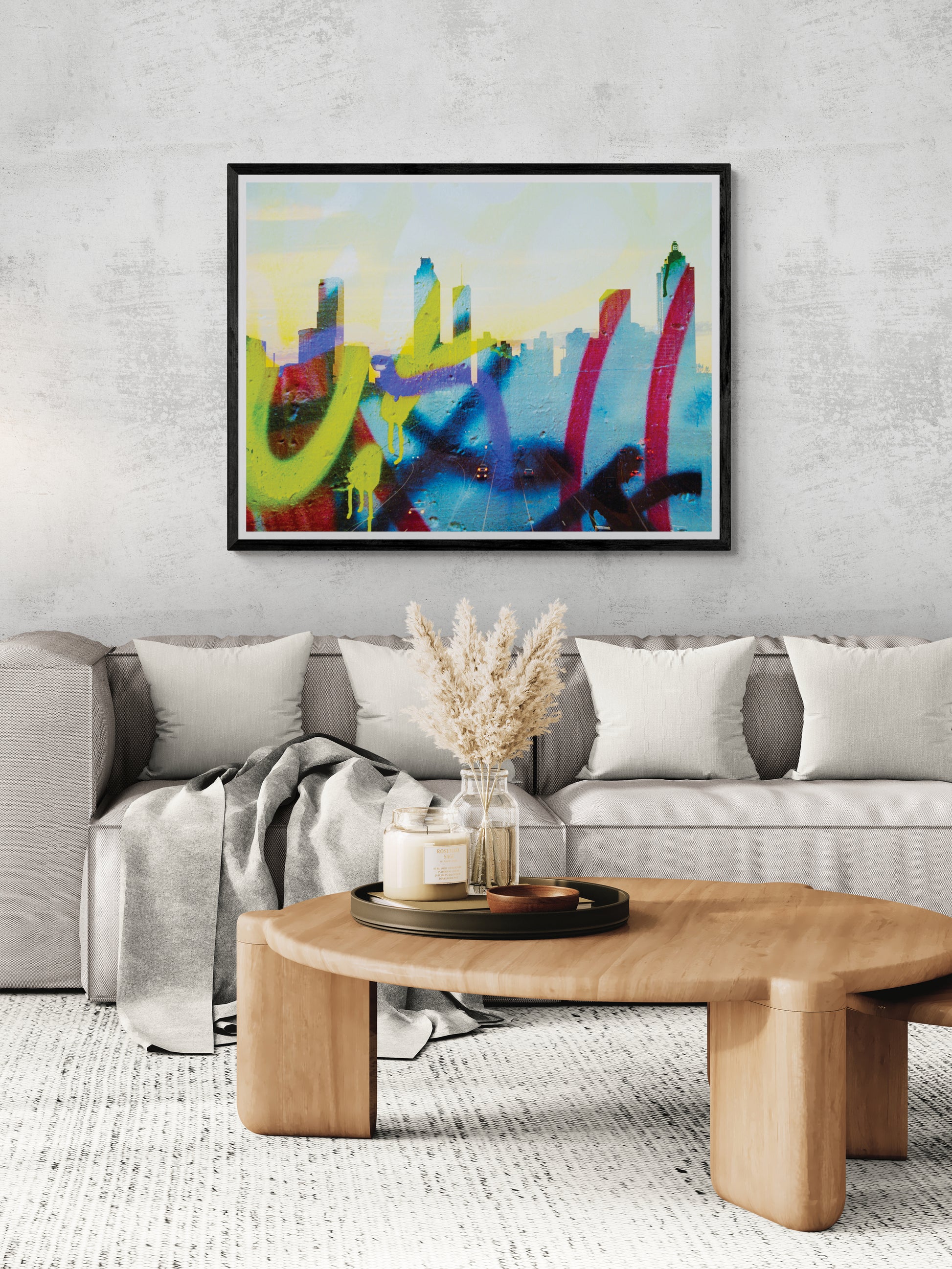 This photo of Atlanta's iconic view from the Jackson Street Bridge was shot on film using a multiple exposure technique to create an impression of downtown Atlanta's skyline in graffiti.