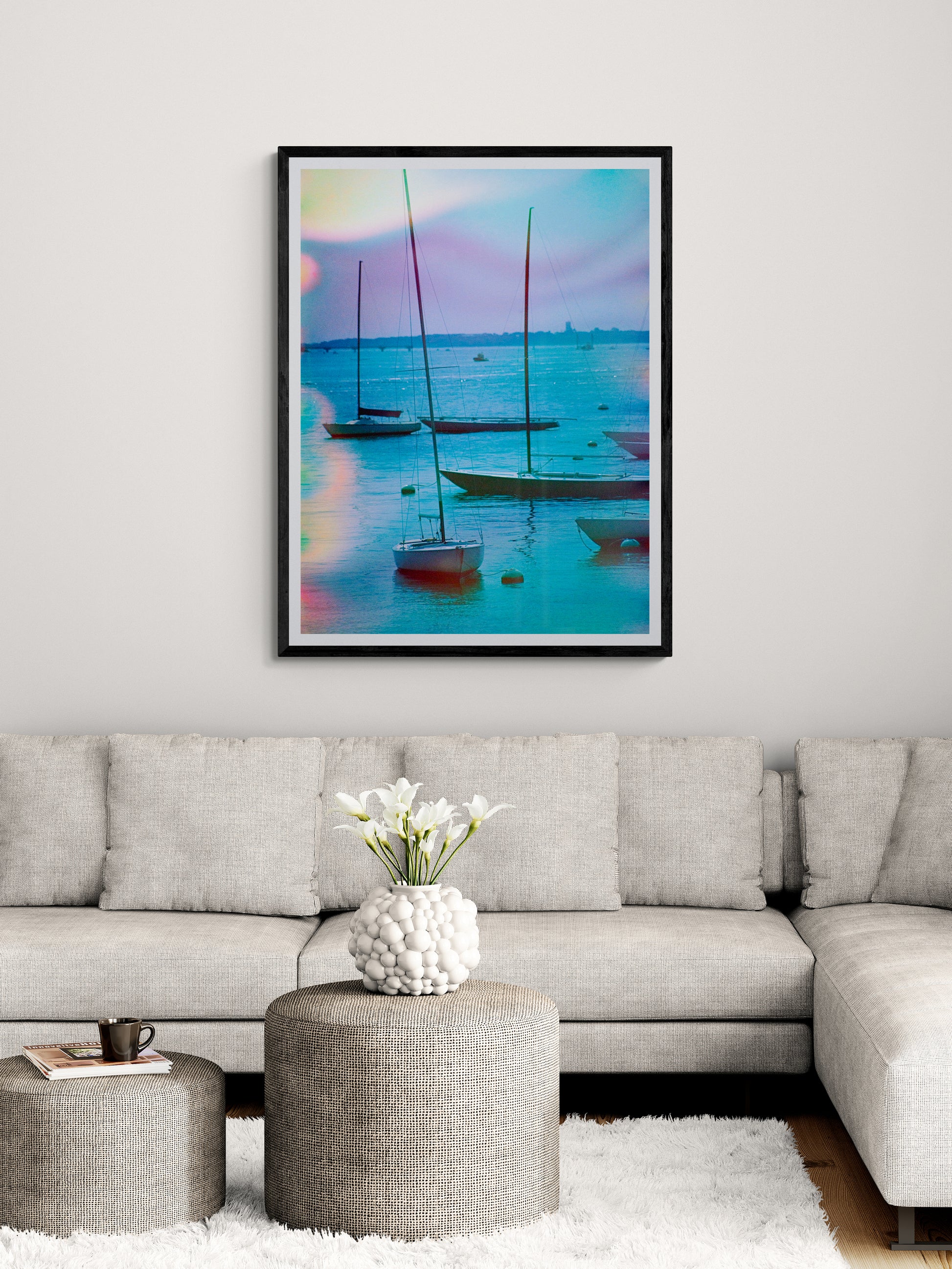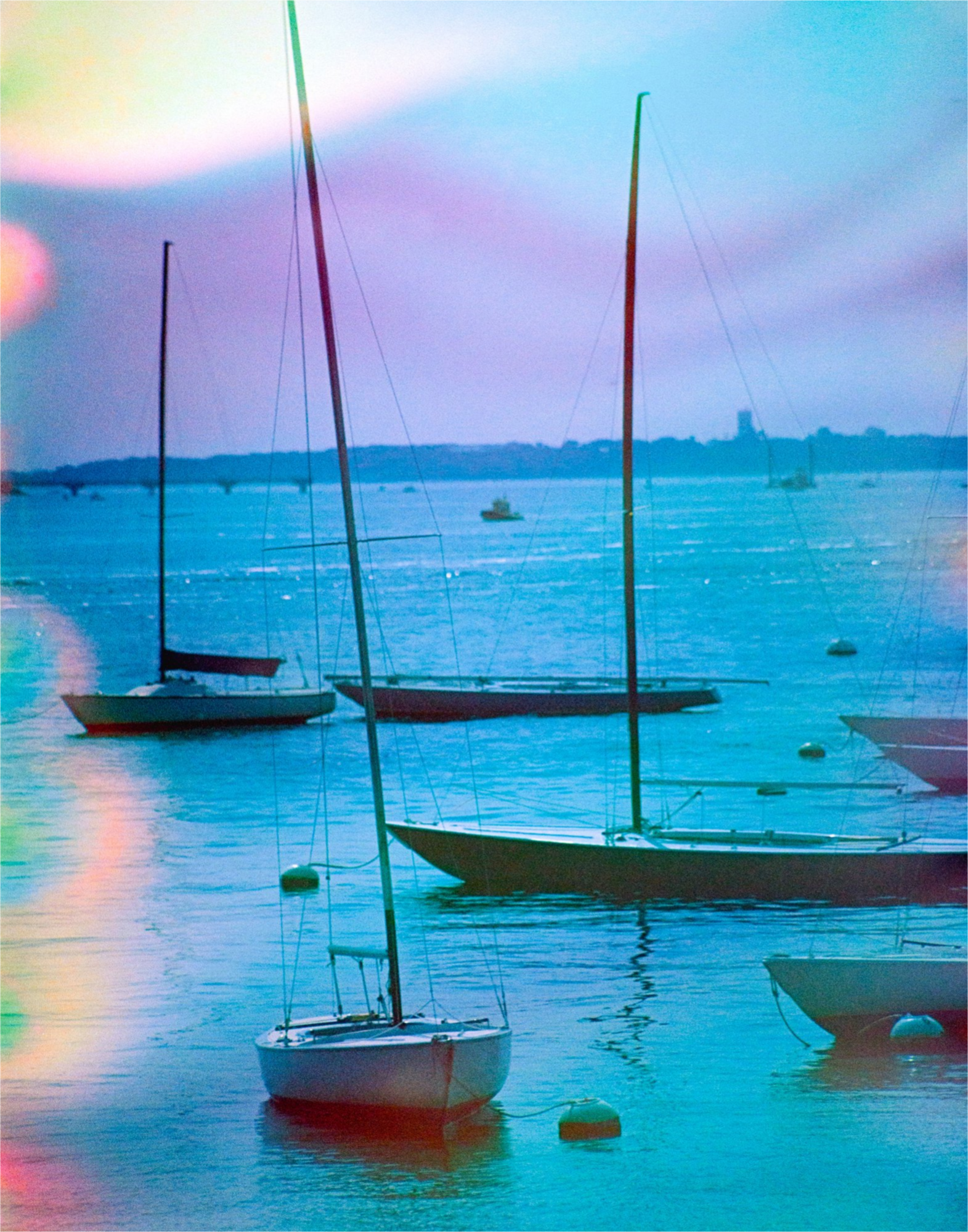 No need to sing the blues when you're looking at this gorgeous view of sail boats bobbing in the waters of Boston Harbor. The unique colors and textures in this image were created using a process called film soup, where 35mm film was soaked in matcha tea, lime juice and dish soap.
