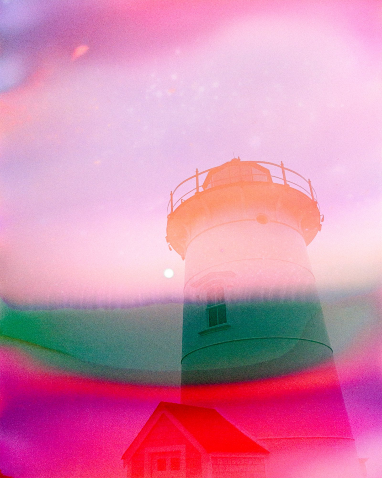 Always on the lookout. This unique lighthouse image was created using film, then soaking the film in Kool-Aid, dish soap, lemon juice and salt.
