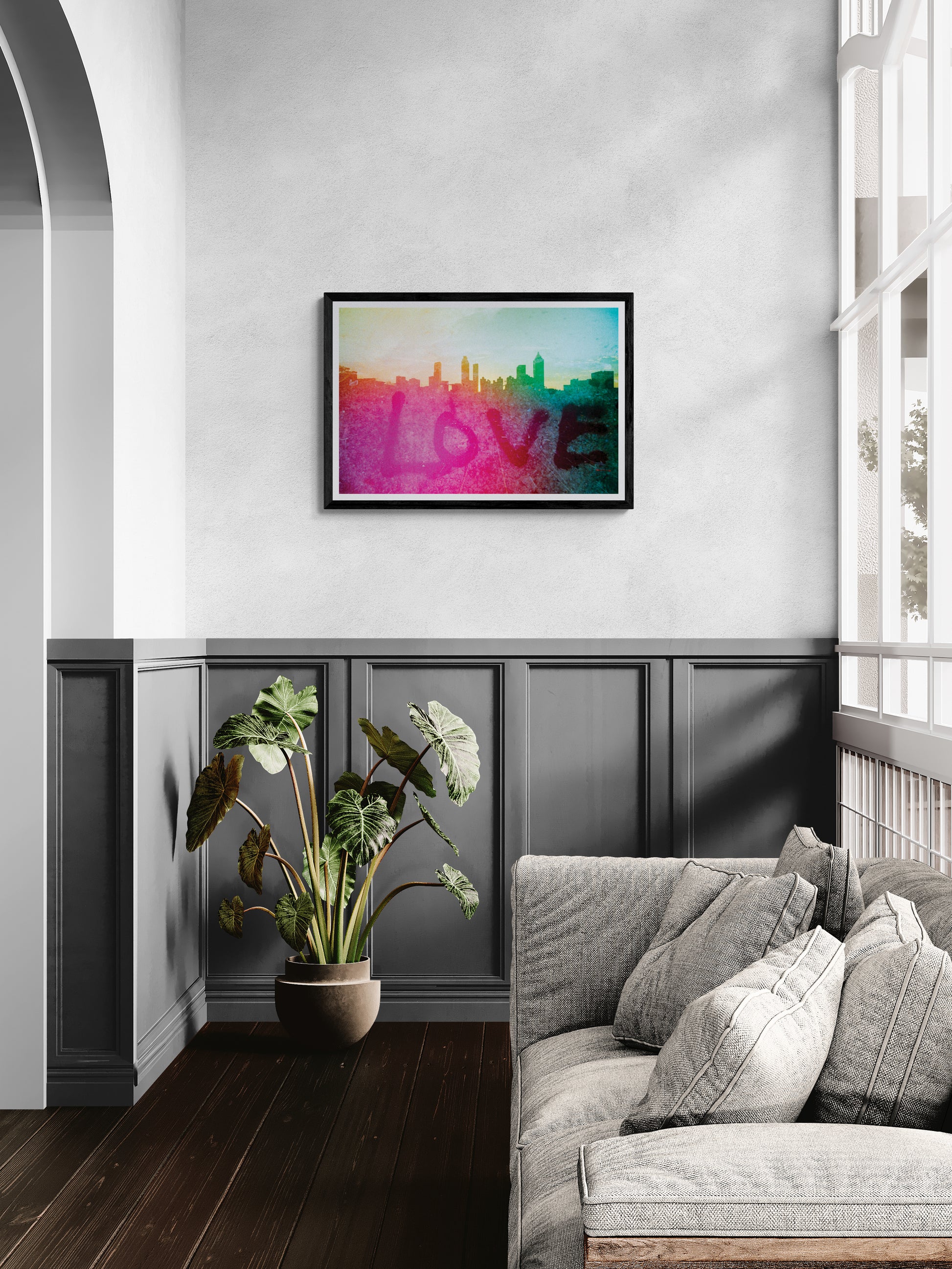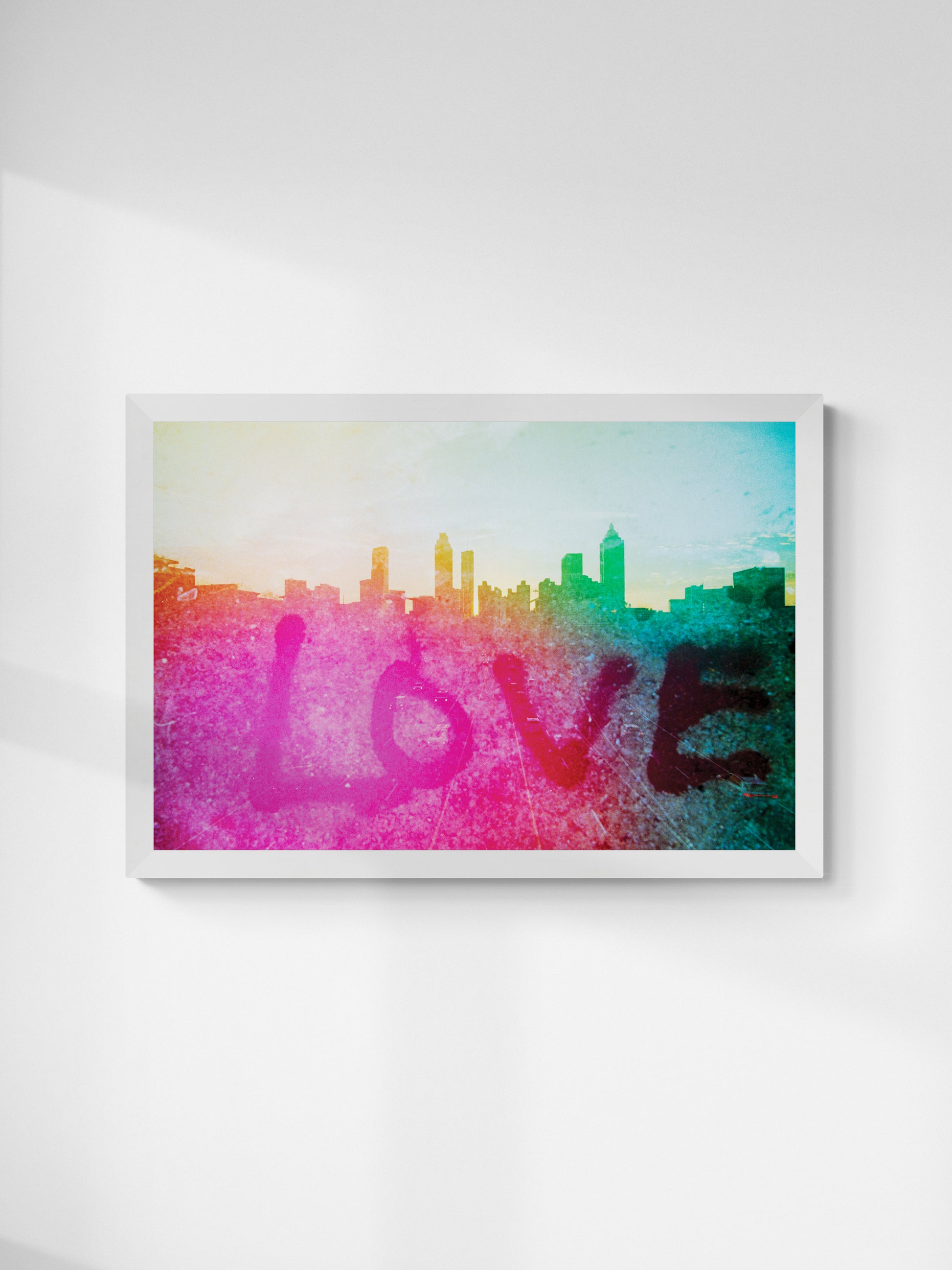 This photo of Atlanta's iconic view from the Jackson Street Bridge was shot on film using a multiple exposure technique to create an impression of downtown Atlanta's skyline in graffiti.