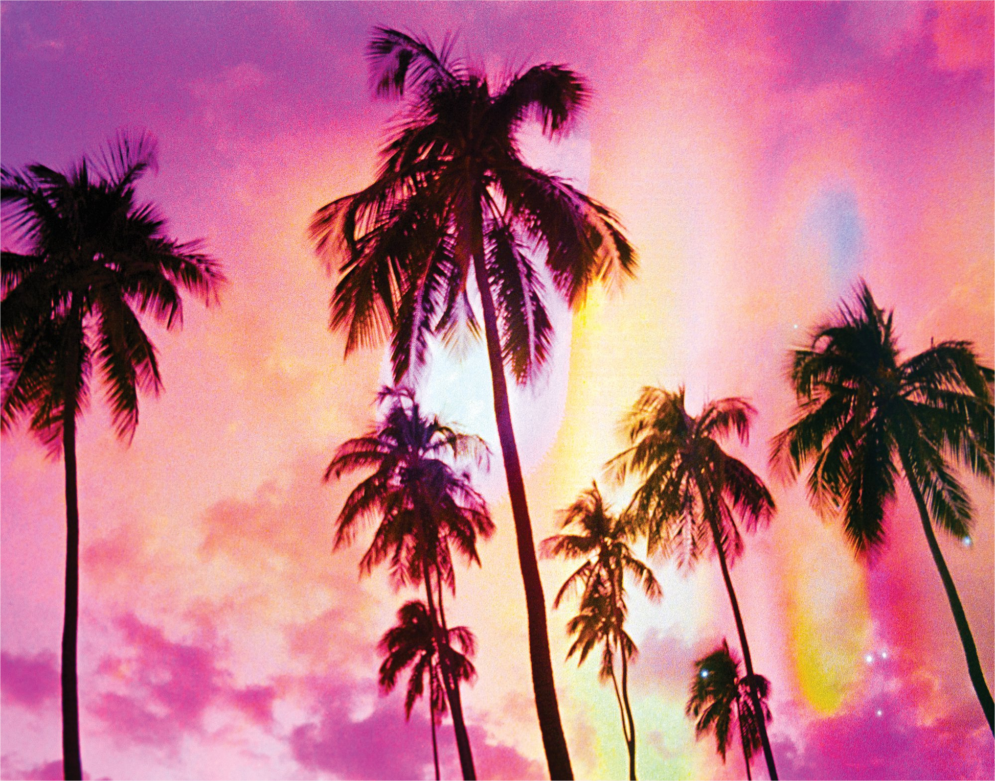 Pink + palm trees = tropical perfection. This dreamy scene of palm trees was shot on film, then soaked in a mixture of boiling water, lemon juice, salt and dish soap.