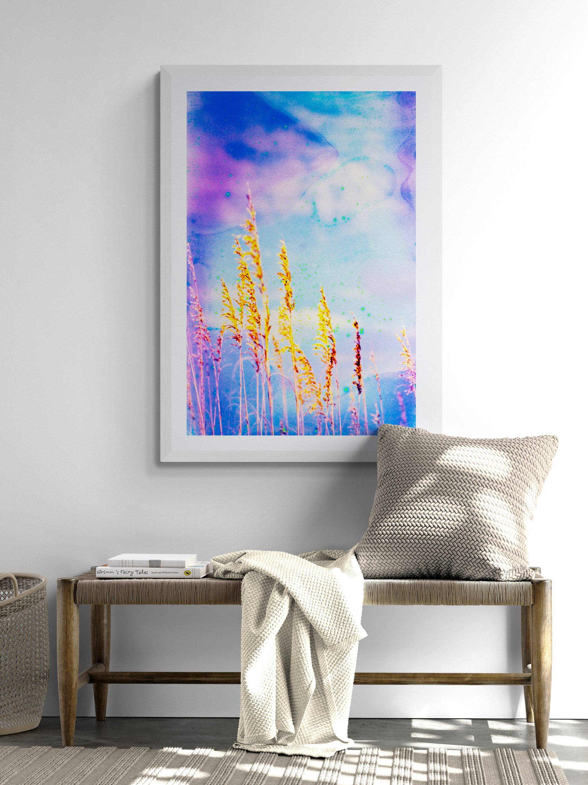 Frames are made of 100% wood with scratch-and-shatter-resistant, UV protective acrylic and come with hanging hardware. All framed prints are dry mounted to secure the prints in the frame.