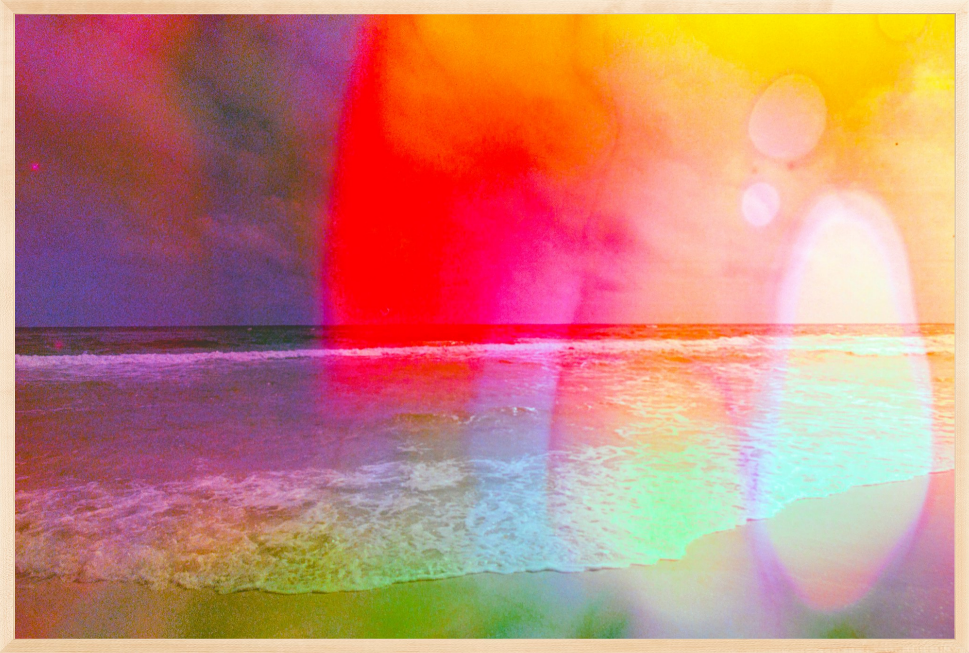 Cast your gaze across the waters of Florida's Gulf coast turned a kaleidoscope of colors through the process of film soup. This one-of-a-kind view was created by soaking 35mm film in boiling water, lemon juice, salt and dish soap.